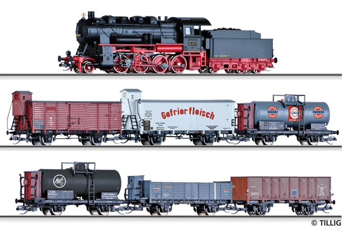 set parní lokomotivy BR 56 a šesti nákladních vozů