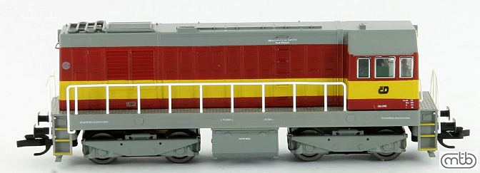 Popis   dieselová lokomotiva červená s výstražným pruhem, šedá střecha, rám a pojezd
