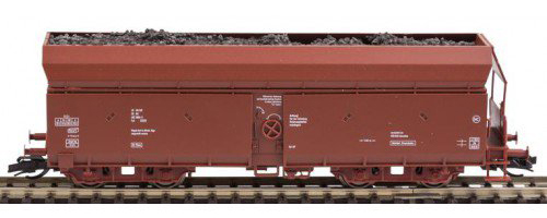 | samovýsypný vůz červenohnědý s nákladem uhlí |