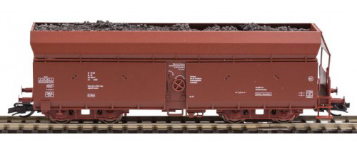 | samovýsypný vůz červenohnědý s nákladem uhlí |