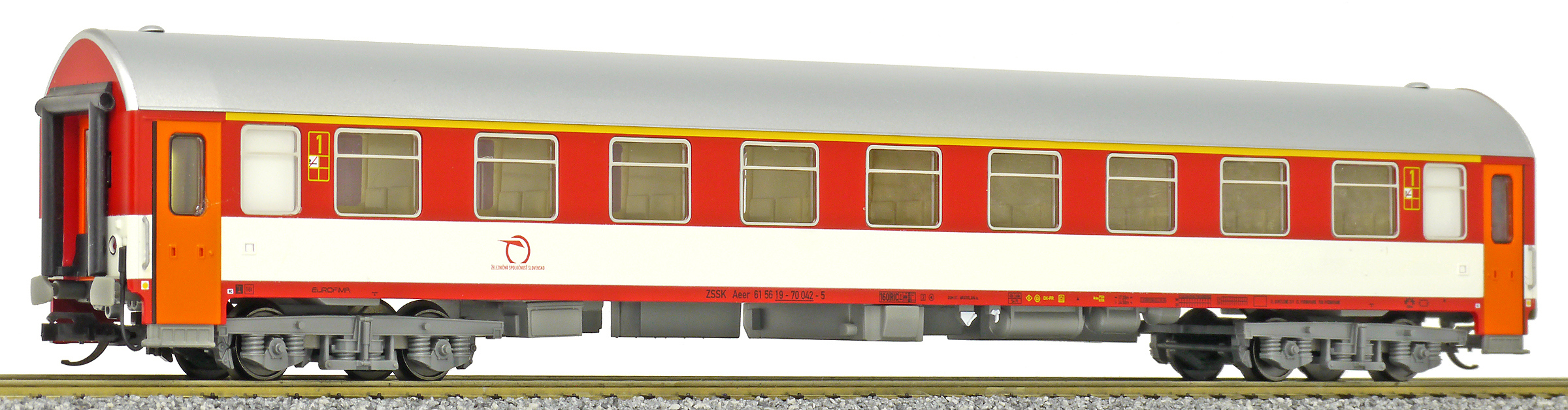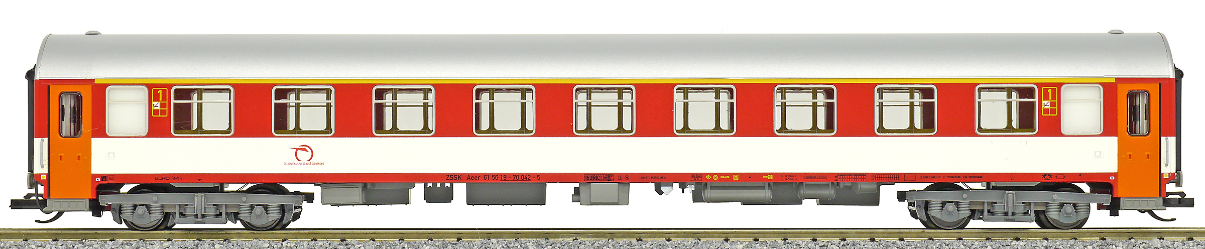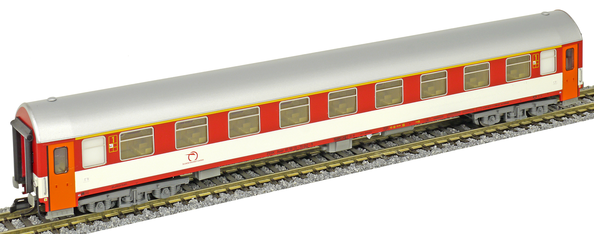 | rychlíkový vůz červený-bílý s šedou střechou 1. tř. |