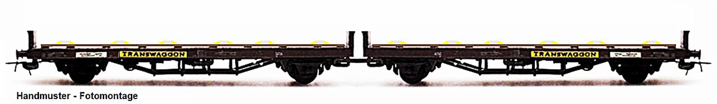 | dvojdílný plošinový nákladní vůz červenohnědý s držáky „Transwaggon“ |
