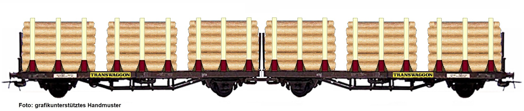 dvojdílný plošinový nákladní vůz červenohnědý s nákladem dřeva