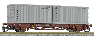 | plošinový vůz červenohnědý s nákladem 2x20' kontejneru „Intrans“ |