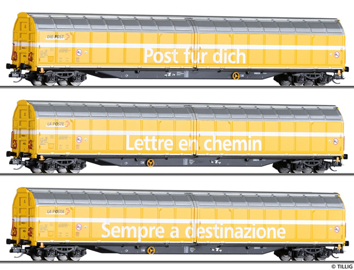 | set tří nákladních vozů s posuvnými bočnicemi |