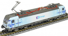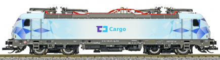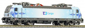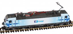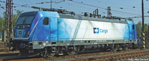 | elektrická lokomotiva světle šedá-modrá s potiskem „ČD Cargo“ |