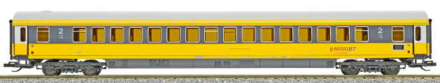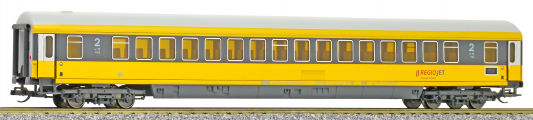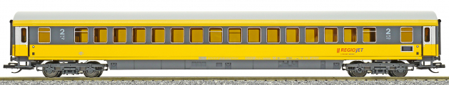| rychlíkový vůz v barevném schematu „RegioJet“ 2. tř. |