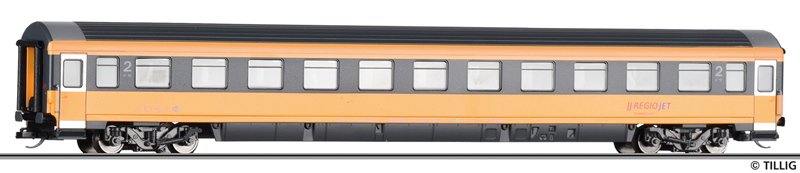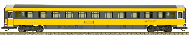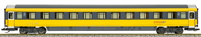 | rychlíkový vůz v barvách „RegioJet“ 2. tř. |