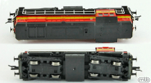 Popis   dieselová lokomotiva červená-černá s výstražným pásem