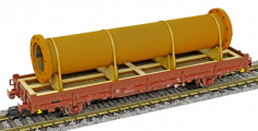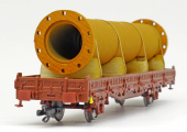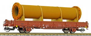 | nízkostěnný nákladní vůz červenohnědý s klanicemi s nákladem přírubové trubky |