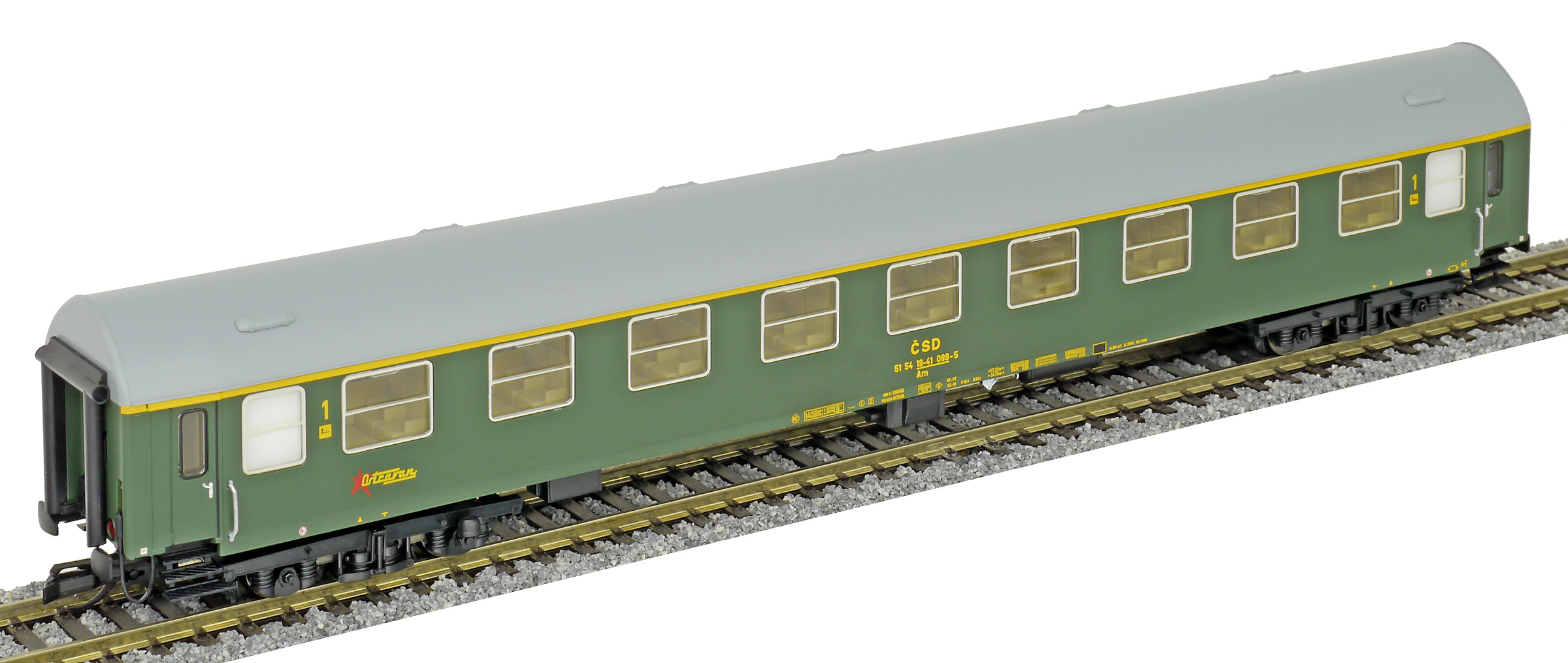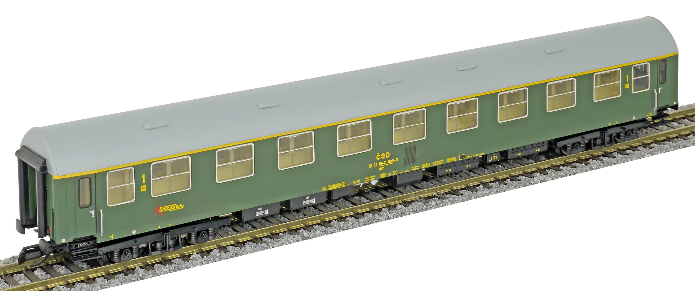 | rychlíkový vůz zelený s šedou střechou 1. tř. „Ostravan“ |