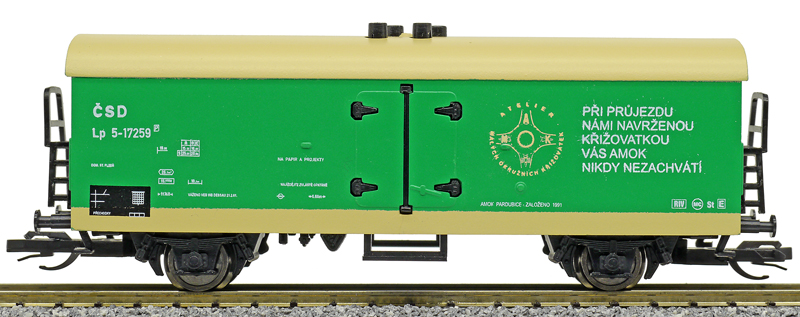 | nákladní chladící vůz zelený s krémovou střechou „AMOK“ |