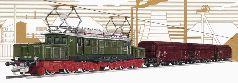 | set elektrické lokomotivy E 94 tří nákladních samovýsypných vozů |