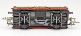 otevřený nákladní vůz červenohnědý s nákladem kulatiny