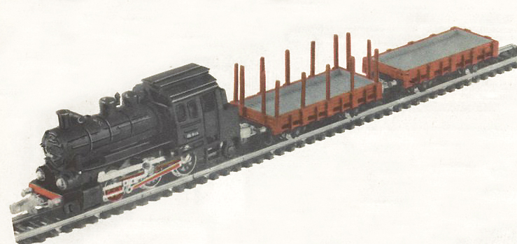 | set parní lokomotivy a dvou nákladních vozů |