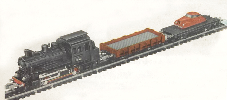 | set parní lokomotivy a dvou nákladních vozů |
