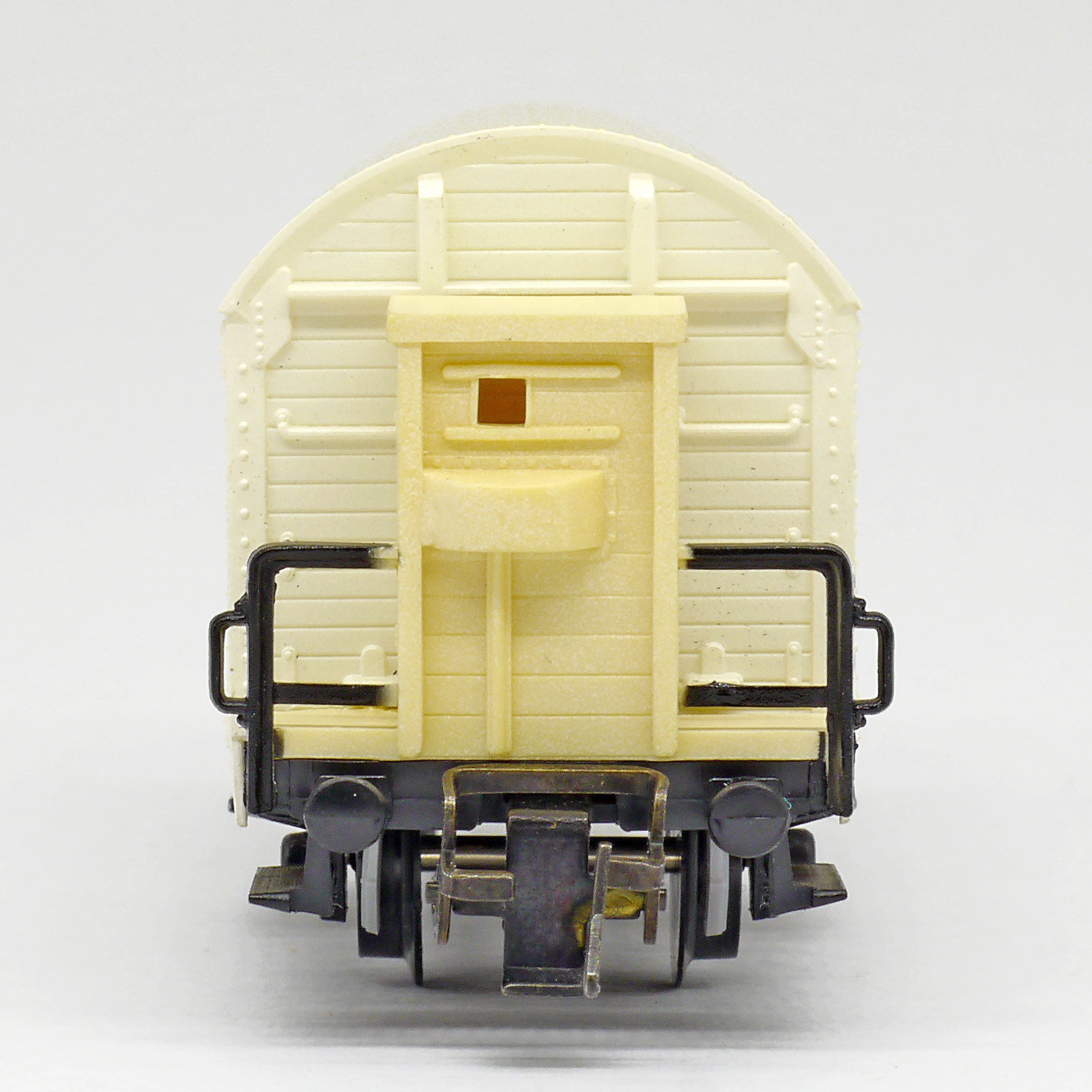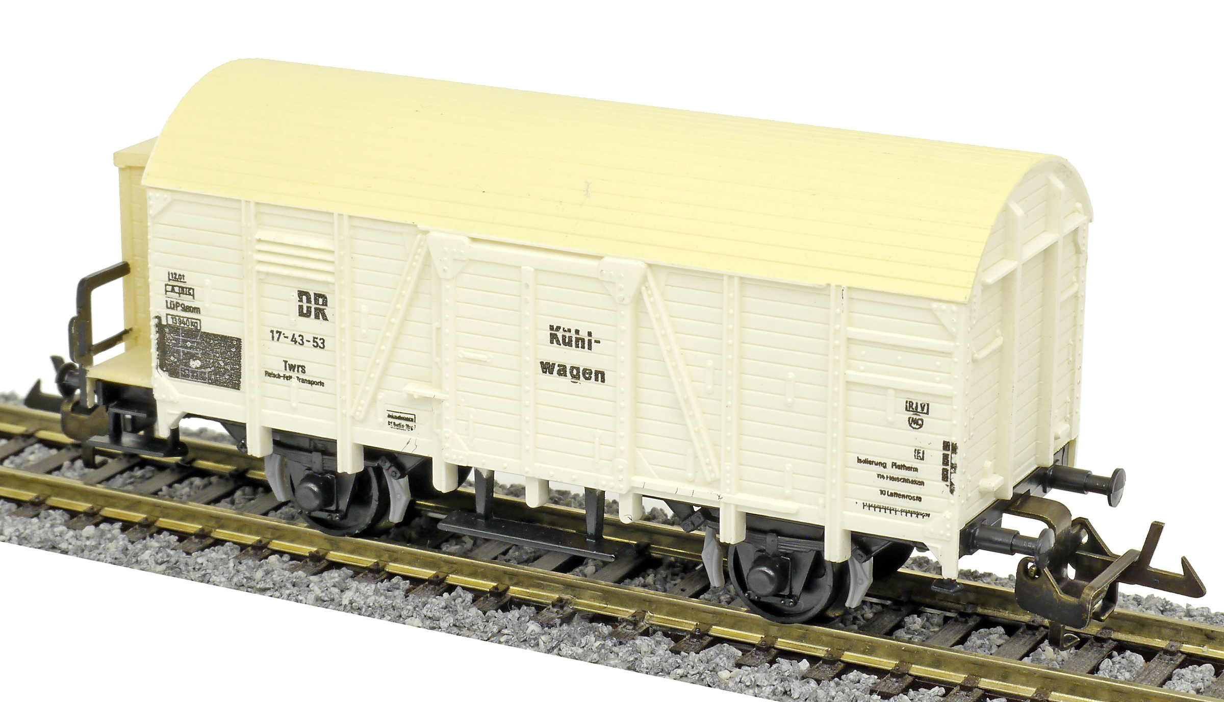 | nákladní chladící vůz bílý s krémovou střechou a s brzdařskou budkou „Kühlwagen“ |