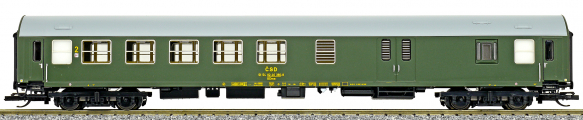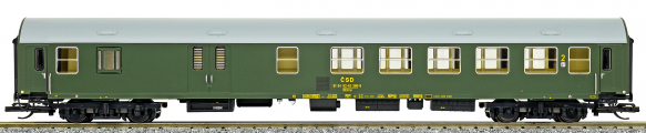 | rychlíkový vůz zelený s šedou střechou 2. tř. a zavazadlovým oddílem |