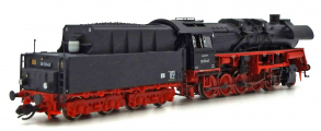 | parní lokomotiva černá s červeným pojezdem s kouřovými plechy, T28-Tender |