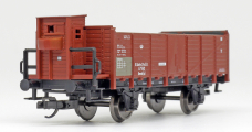 | otevřený nákladní vůz červenohnědý s brzdařskou budkou |