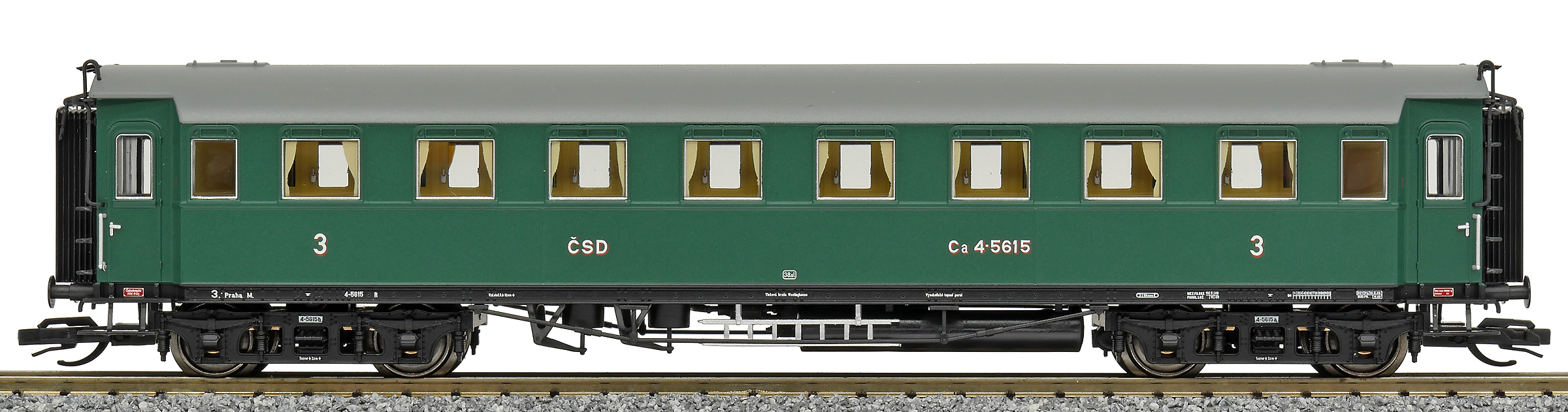 | oddílový osobní vůz zelený s šedou střechou 3. tř. |