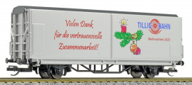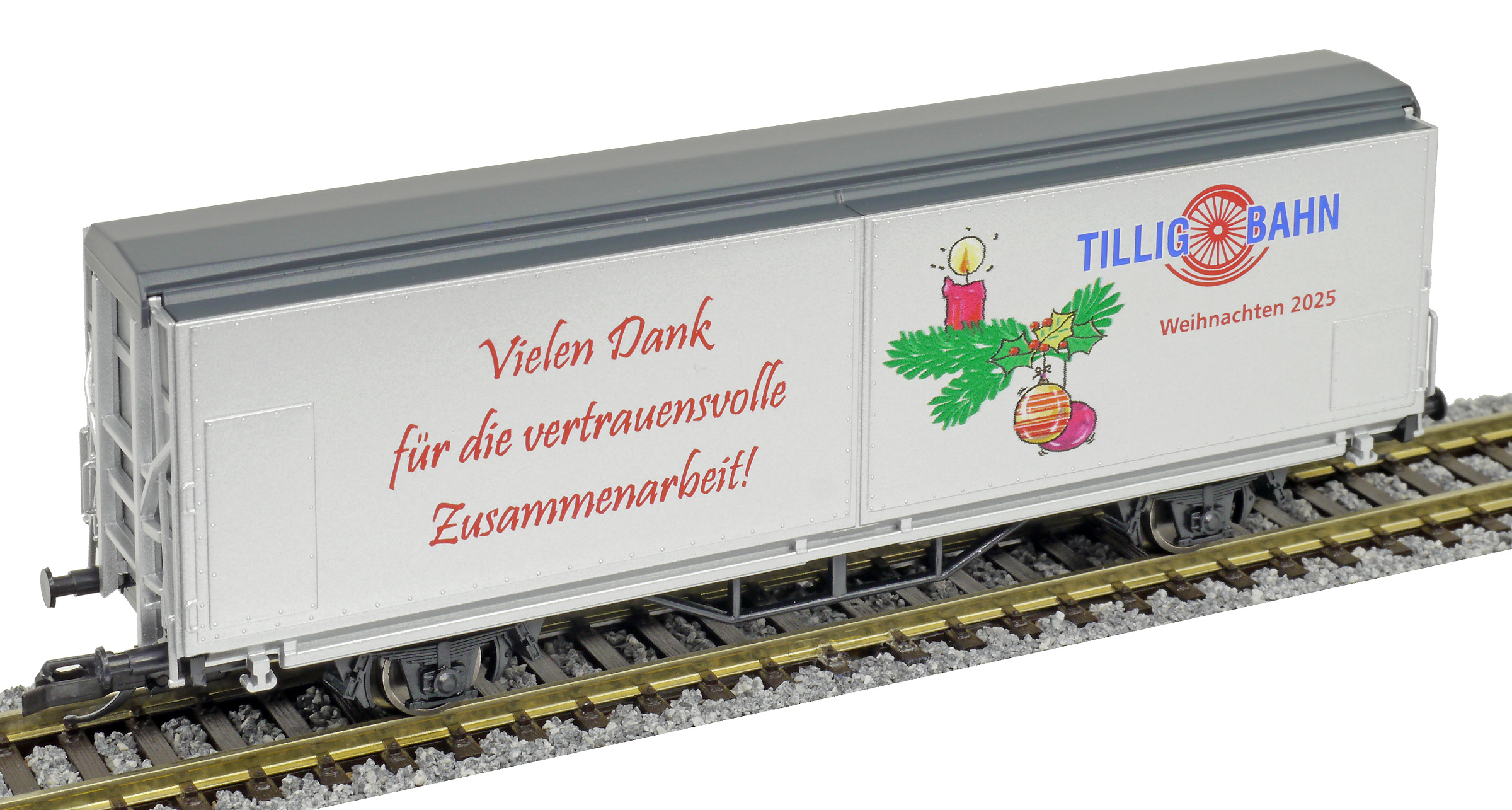 Popis   nákladní vůz s posuvnými bočnicemi světle stříbrný „Danke 2025“