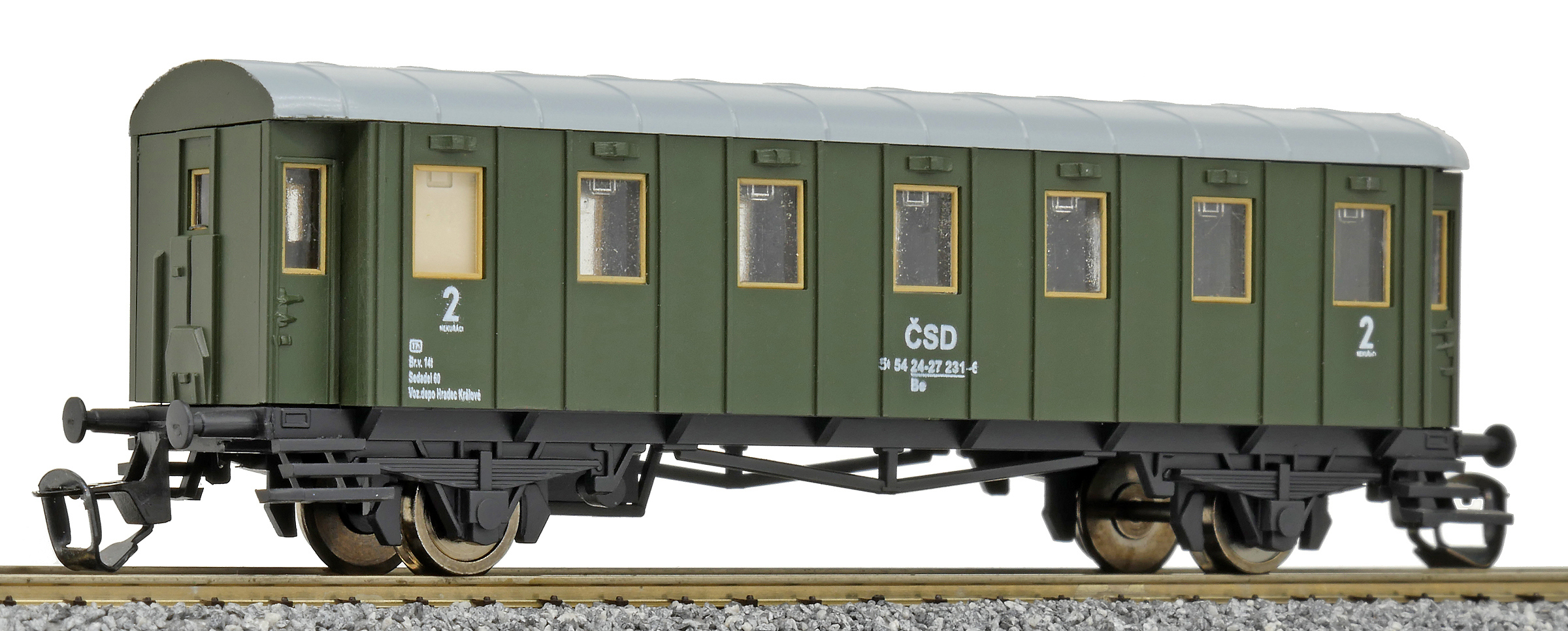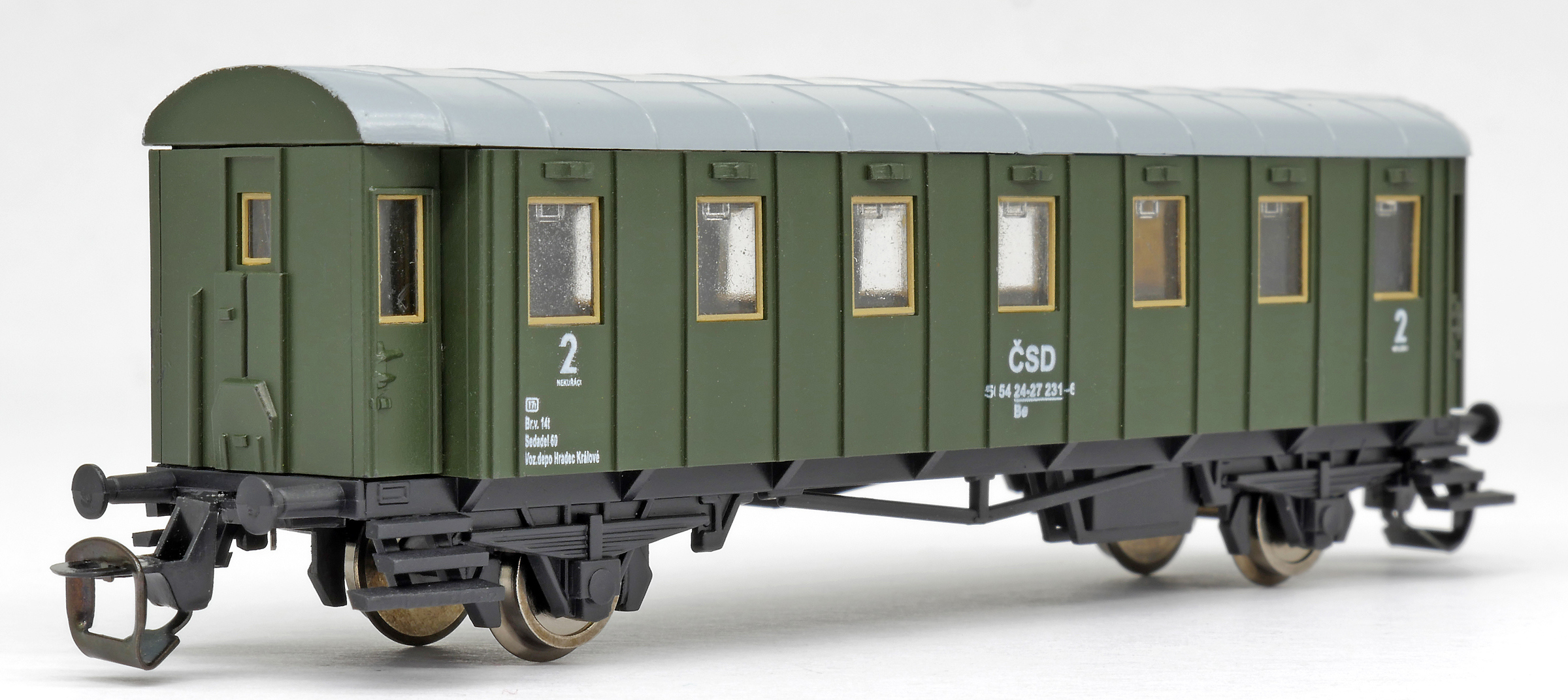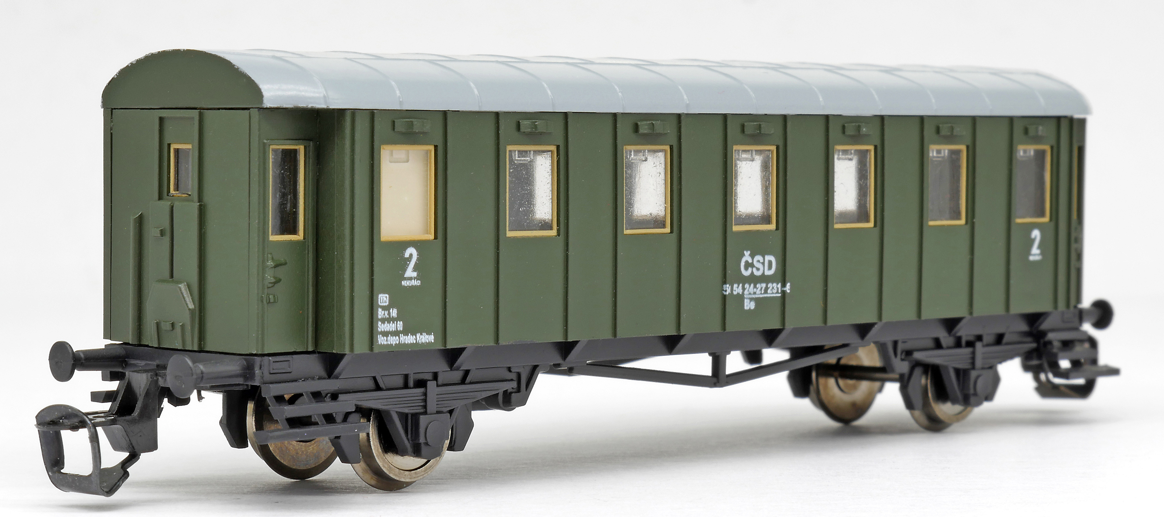 | osobní vůz zelený s šedou střechou 2. tř. |