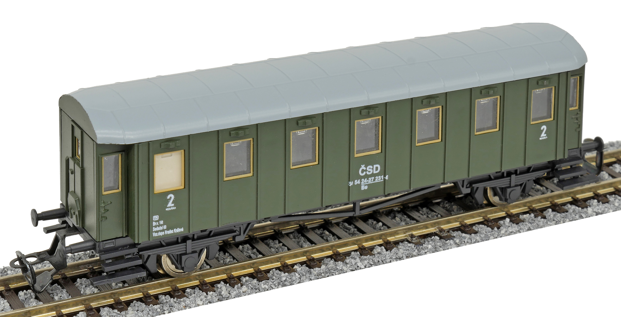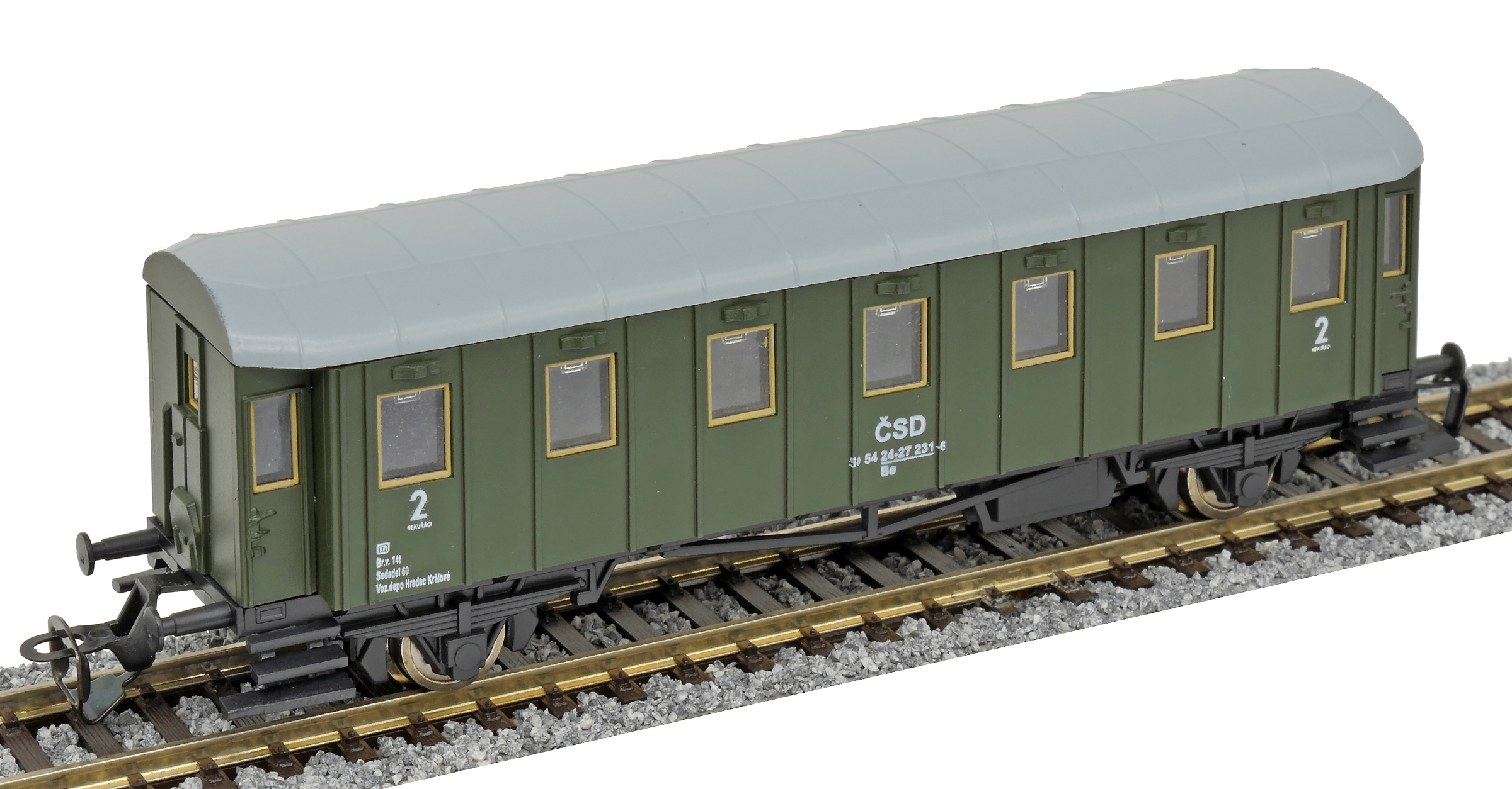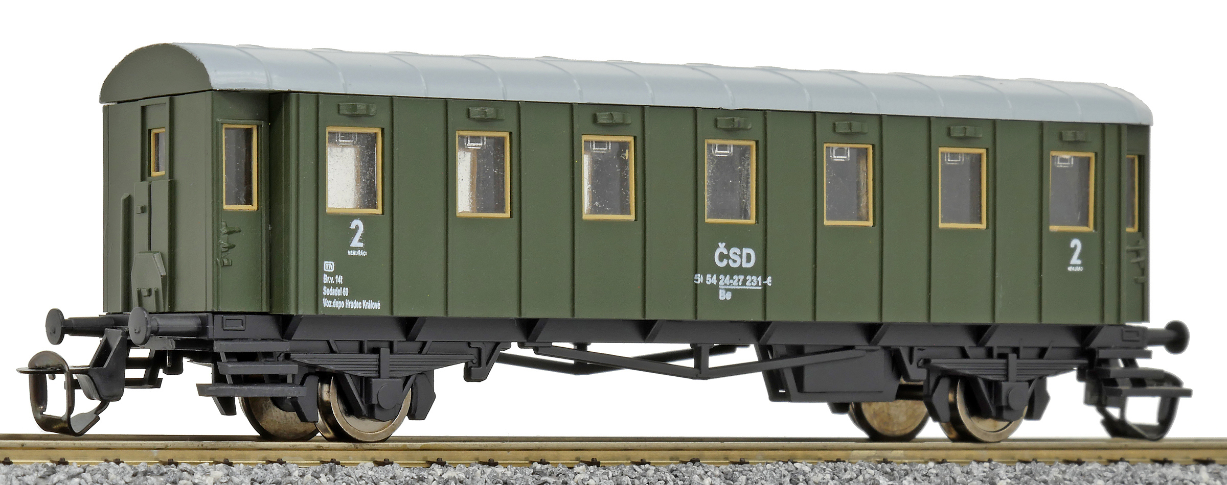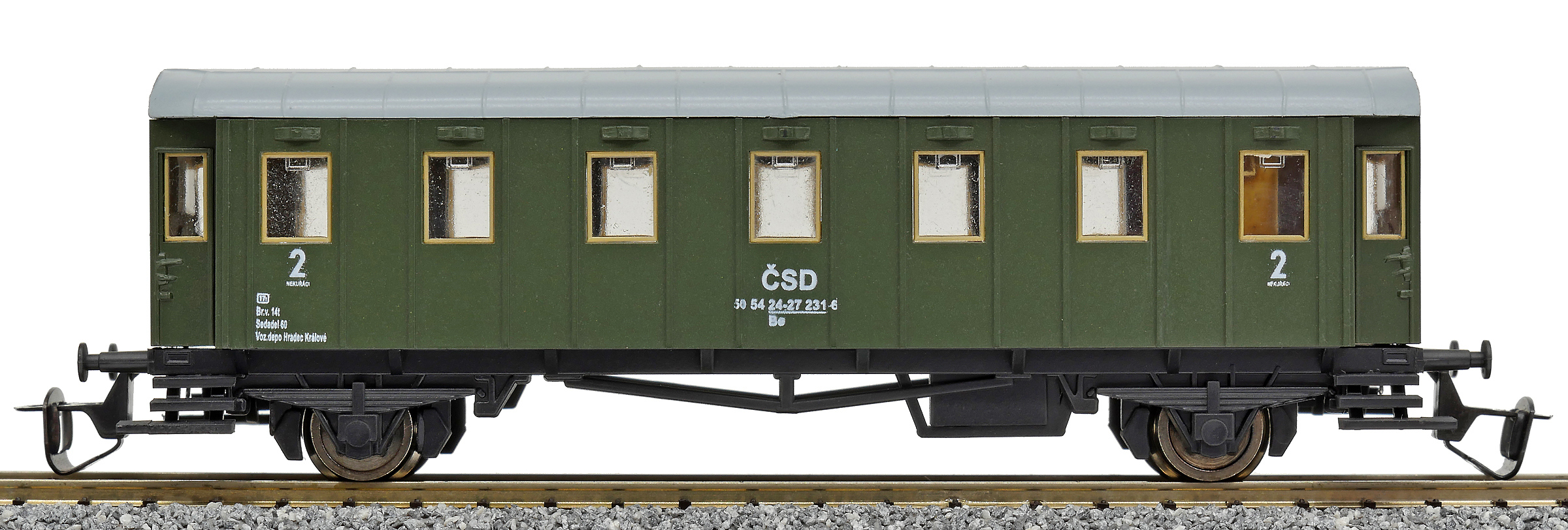 | osobní vůz zelený s šedou střechou 2. tř. |