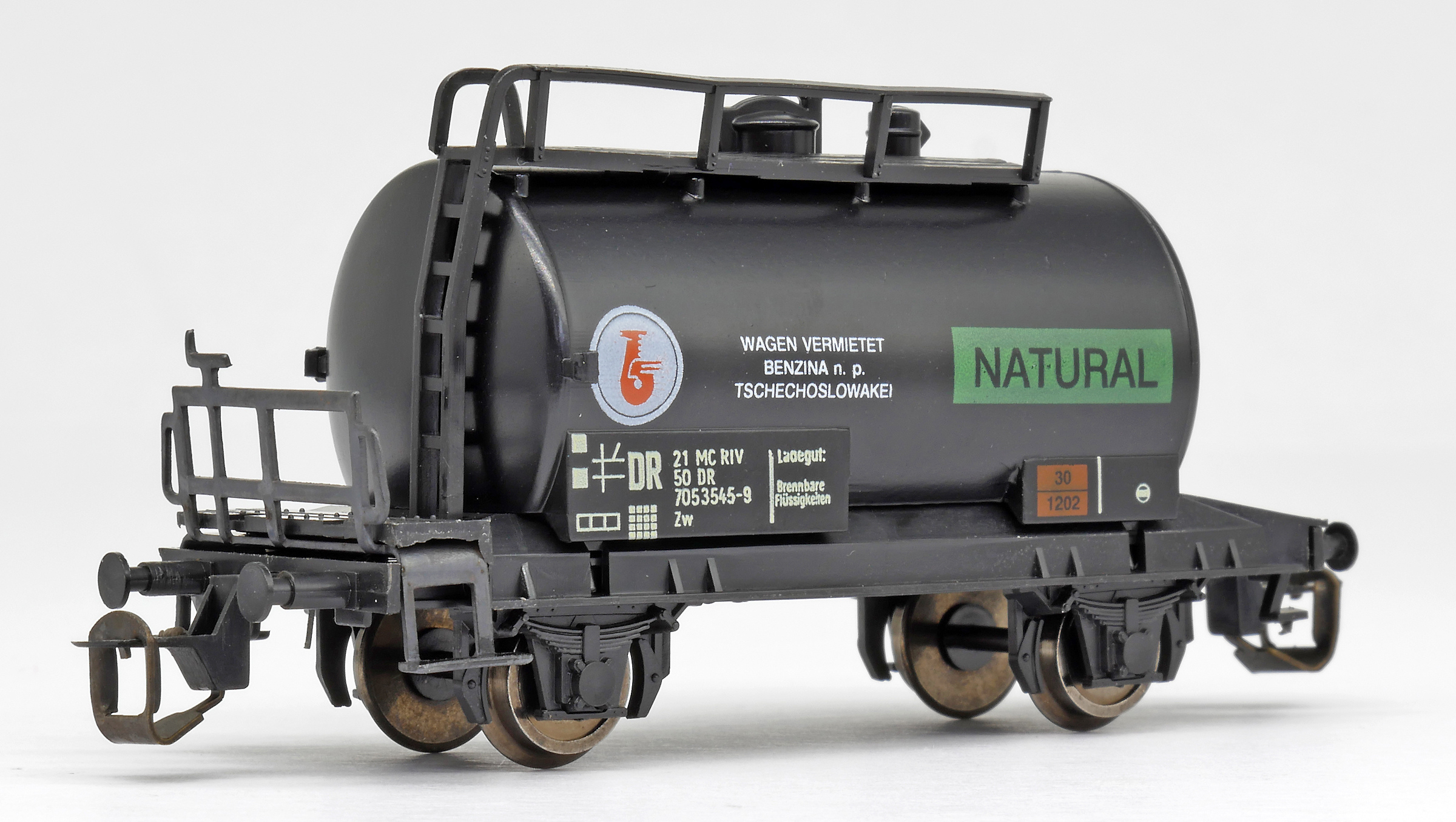 | kotlový vůz černý s potiskem „BENZINA-NATURAL“ |