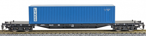 | nákladní plošinový vůz černý s kontejnerem 40' „LYKES“ |