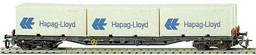 | nákladní plošinový vůz černý se třemi kontejnery 20' „Hapag-Lloyd“ |