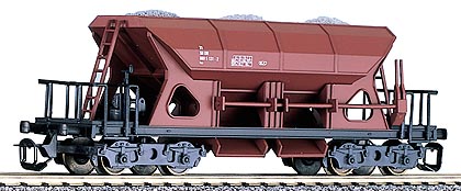 | nákladní symovýsypný vůz červenohnědý s černým rámem a s nákladem šterku |