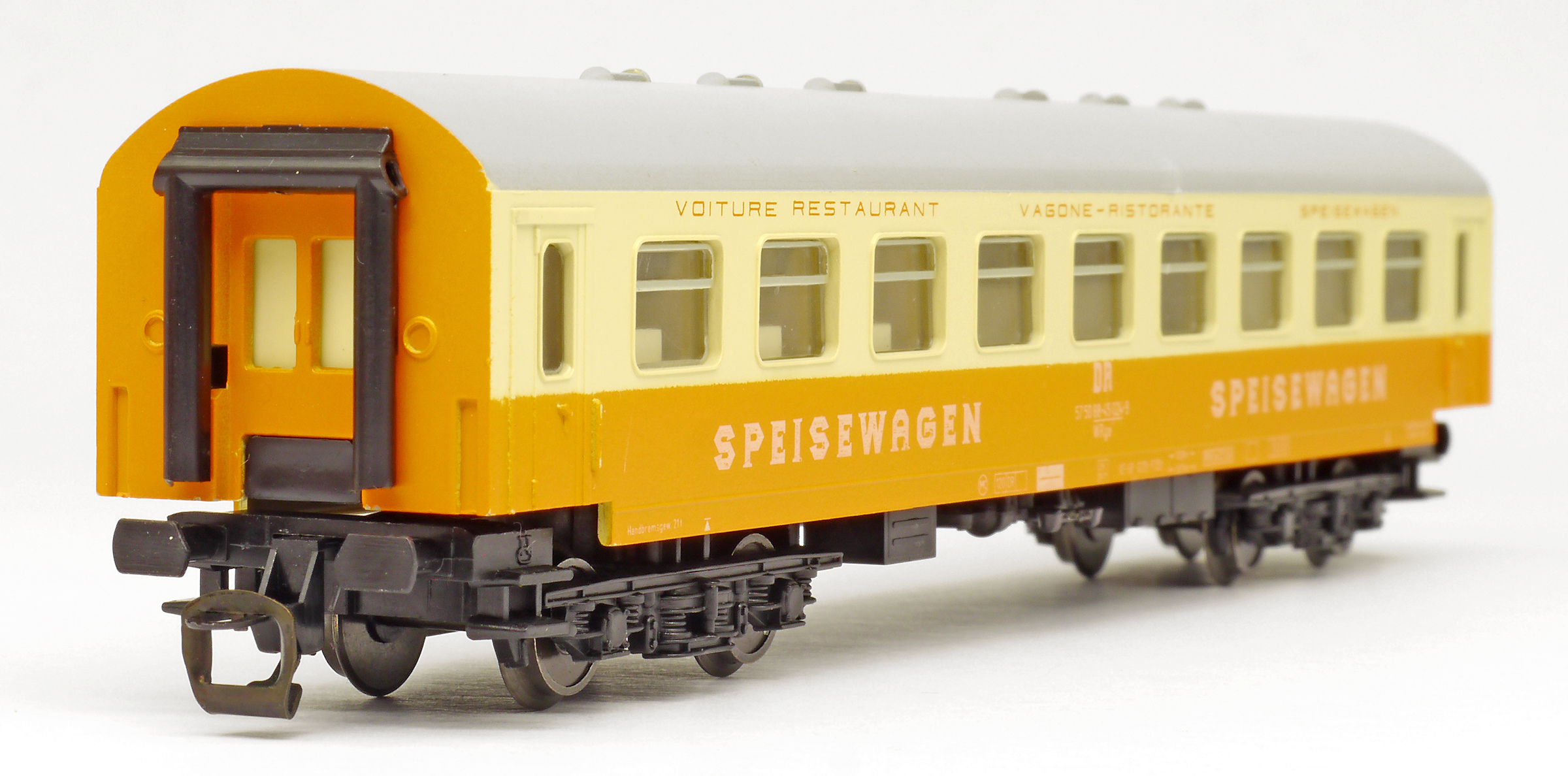 | jídelní vůz oranžový-slonová kost s šedou střechou „MITROPA“ |