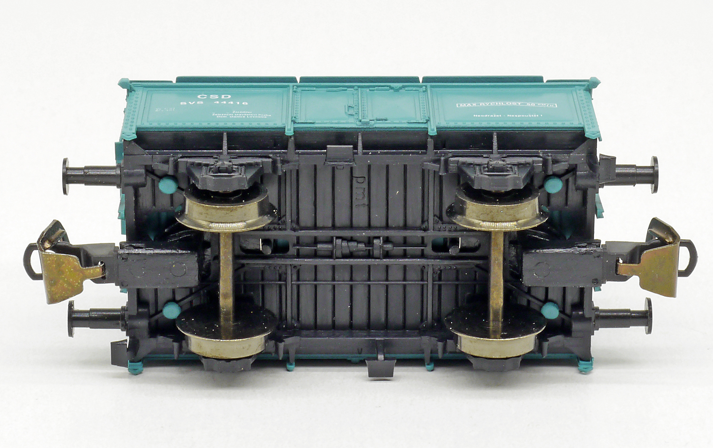 Popis   nákladní vůz tyrkysový s klapkami, černý pojezd