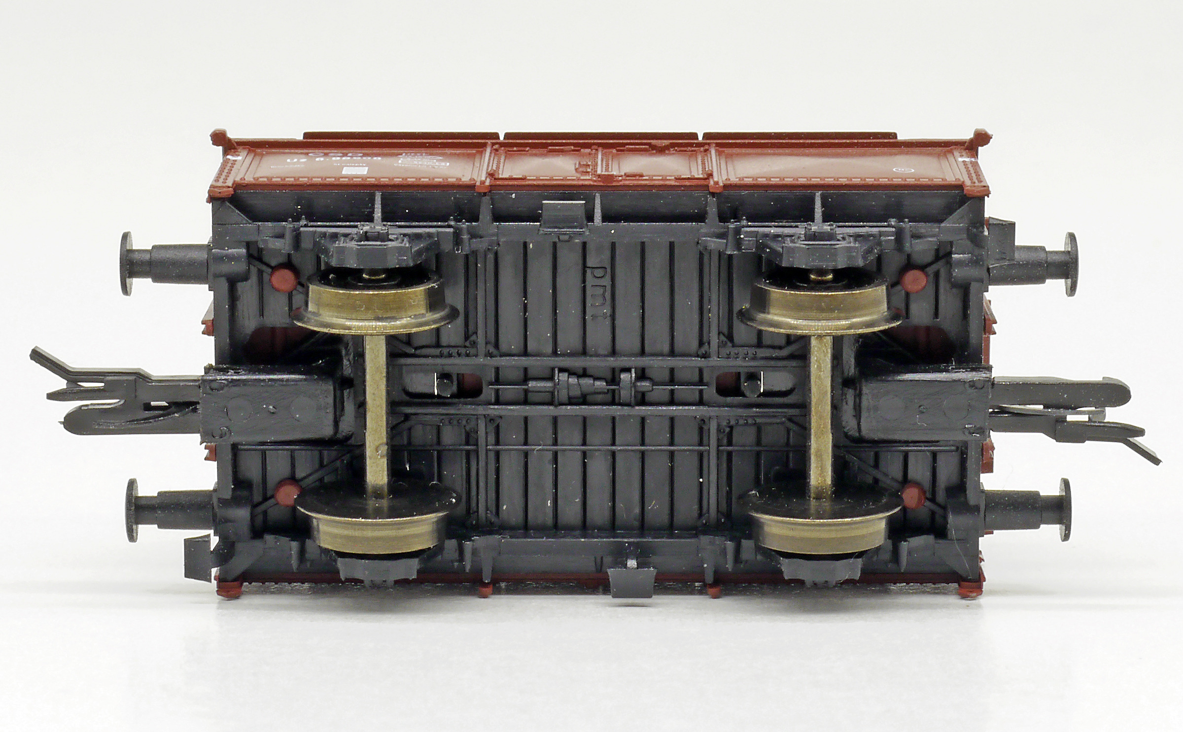 Popis   nákladní vůz červenohnědý s klapkami, černý pojezd