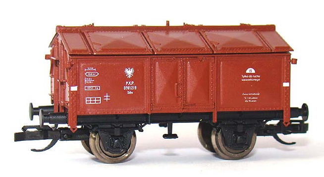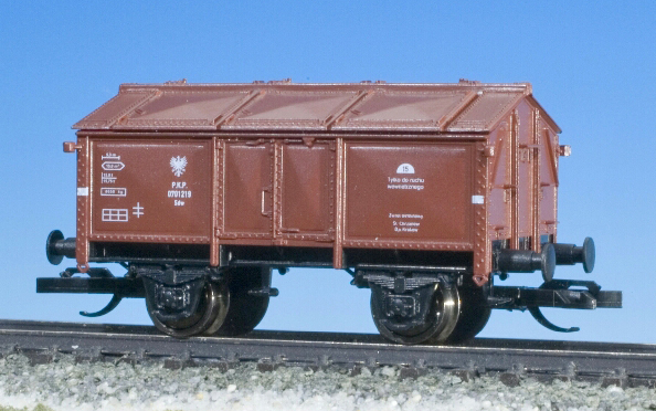 Popis   nákladní vůz červenohnědý s klapkami, černý pojezd
