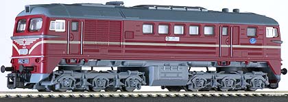 Popis   dieselová lokomotiva červená s šedou střechou a pojezdem