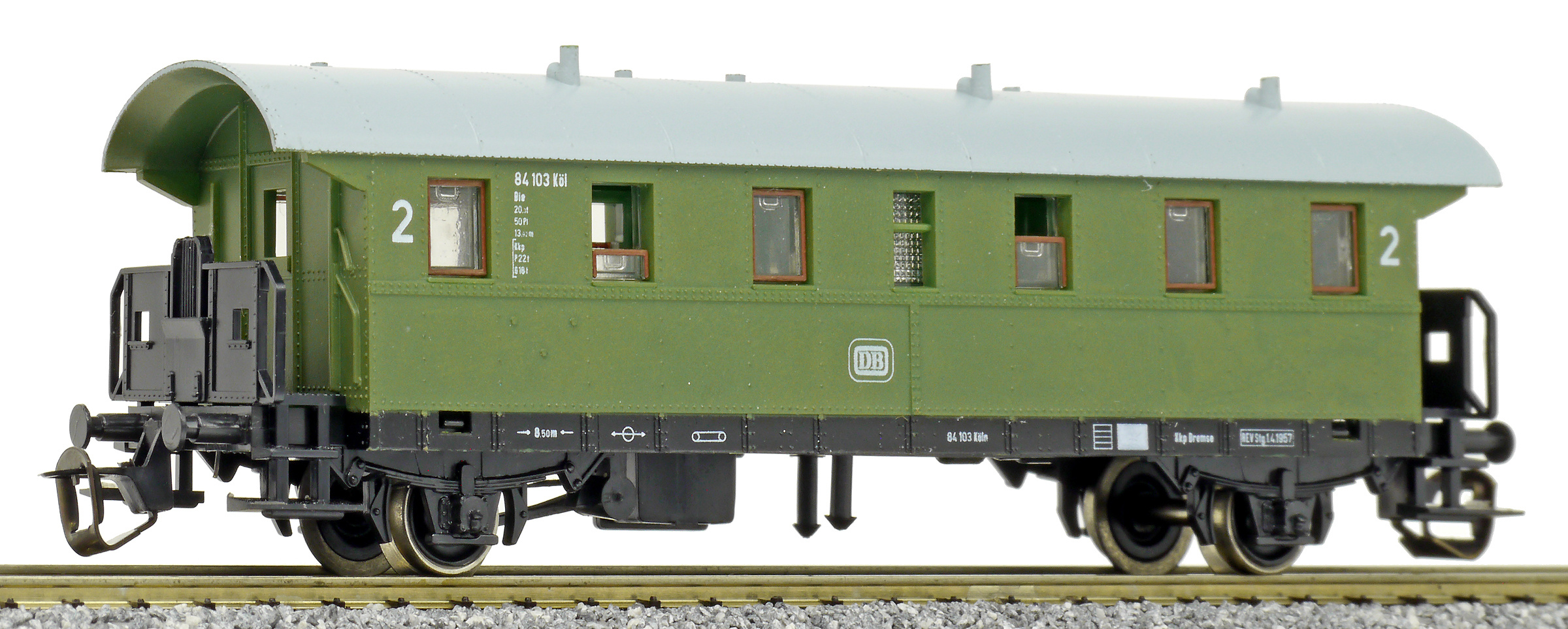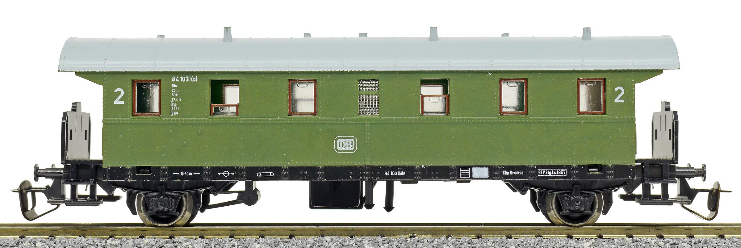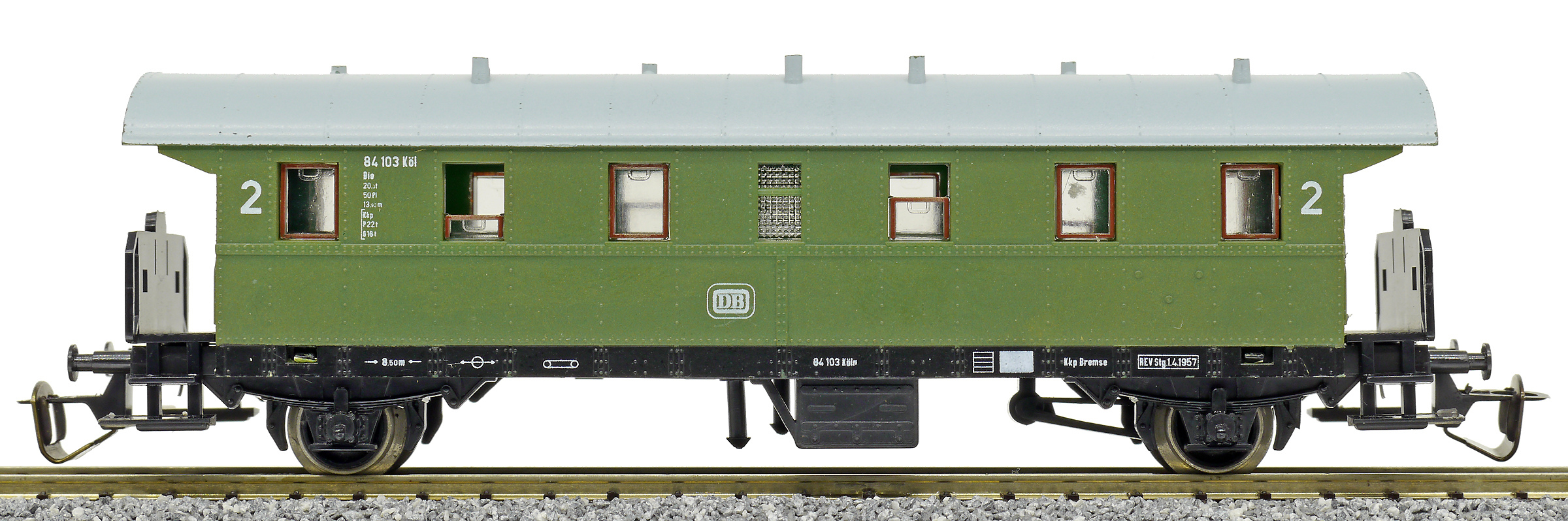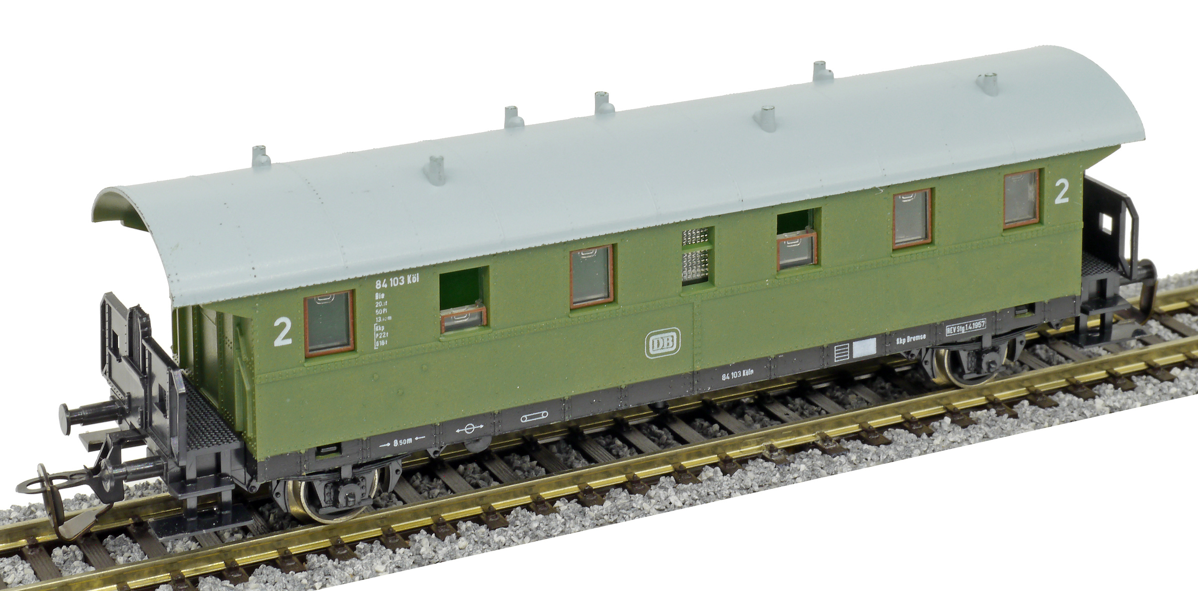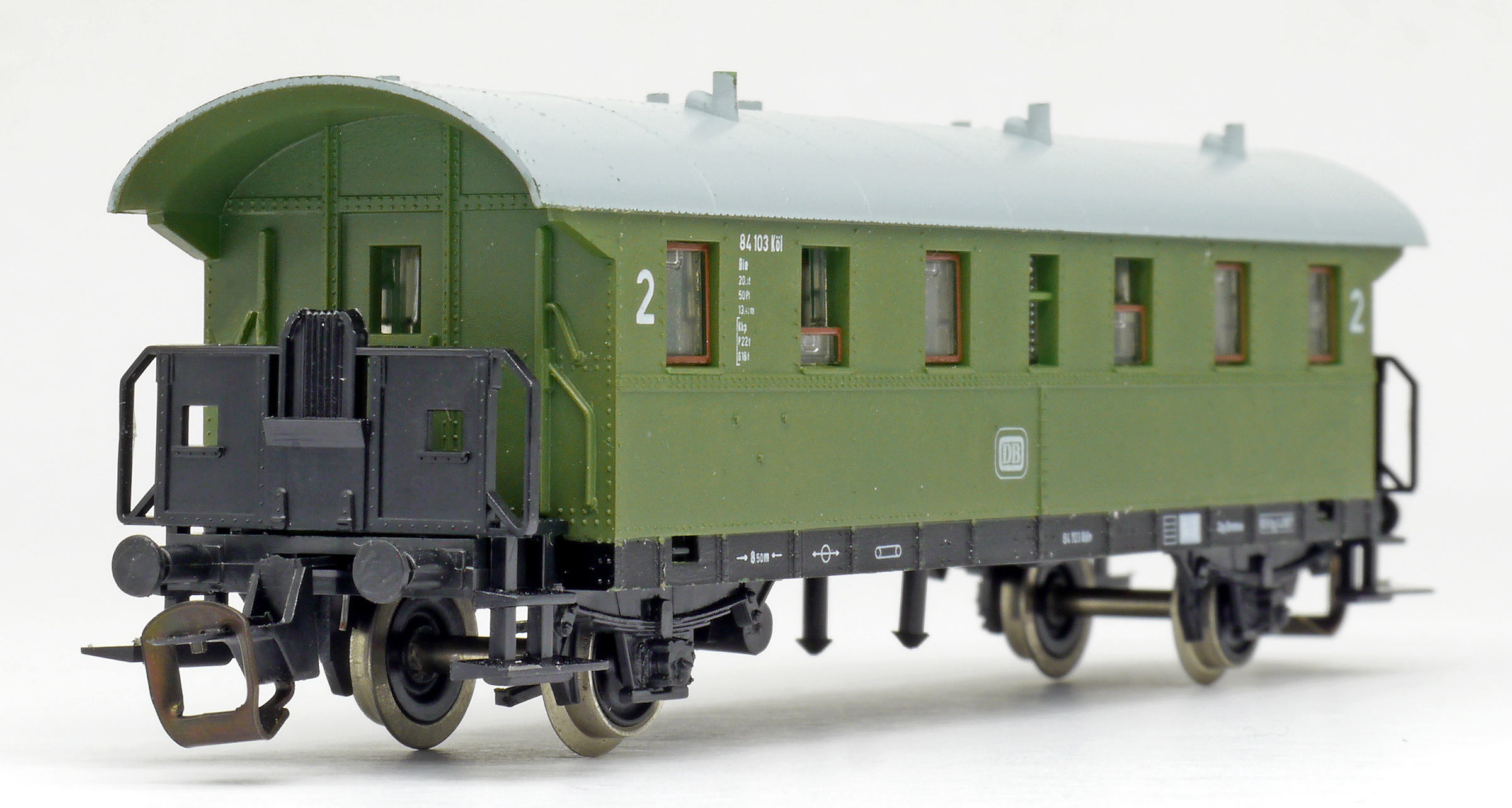 osobní vůz zelený se světle šedou střechou 2. tř.