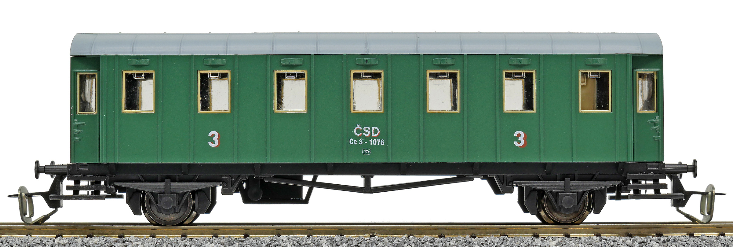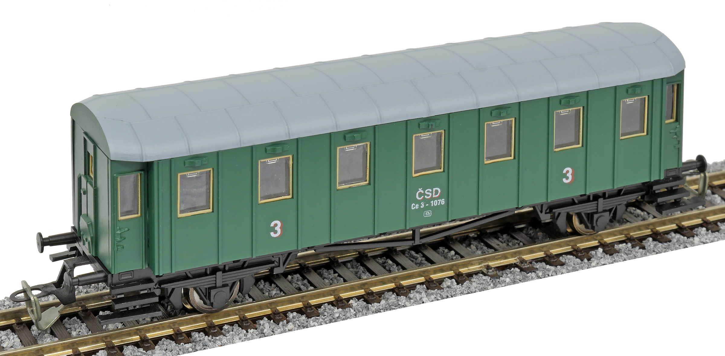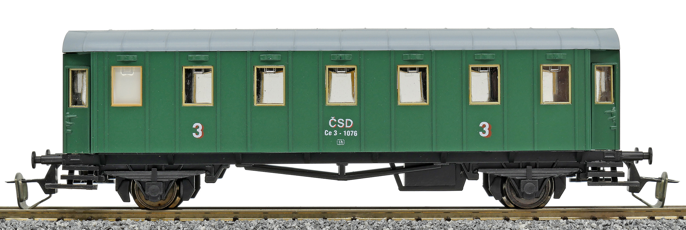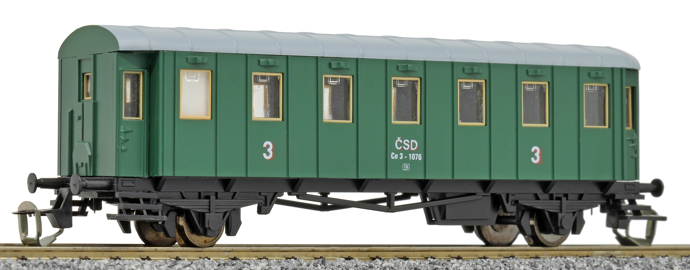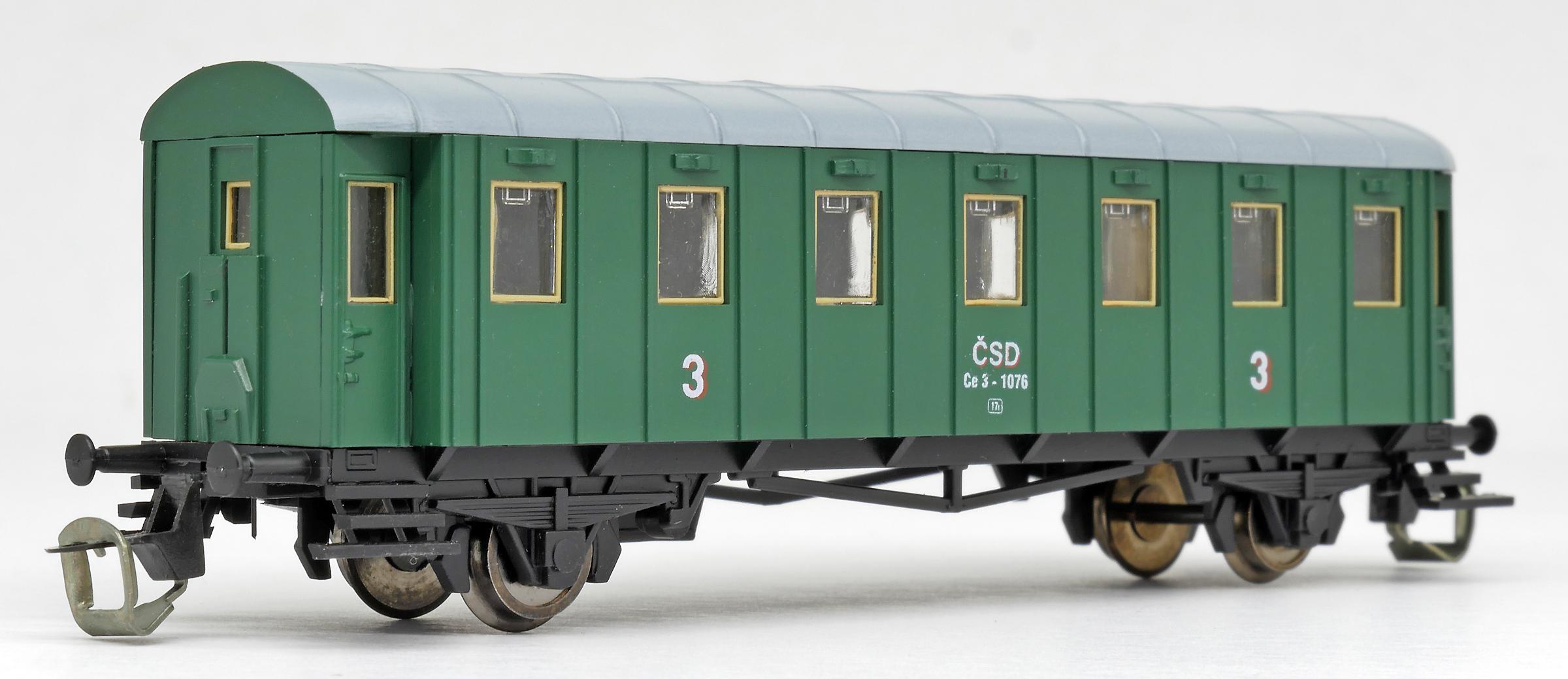 | osobní vůz zelený s šedou střechou 3. tř. |