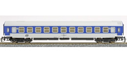 | lůžkový vůz modrý-bílý se světle šedou střechou |