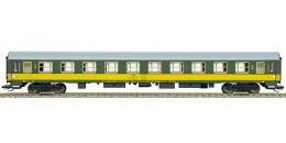 | rychlíkový vůz zelený se žlutým pruhem a šedou střechou 2. tř. |