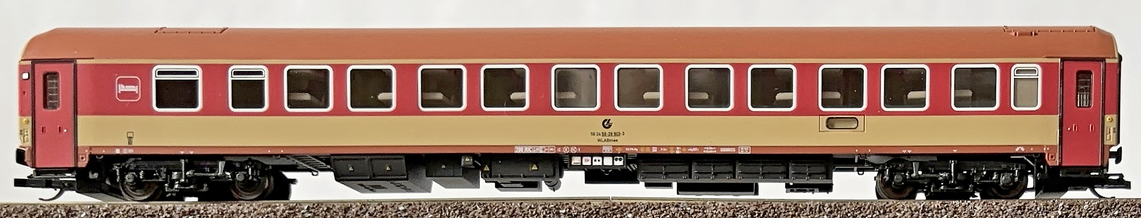 lůžkový vůz oranžový-slonová kost s krémovou střechou