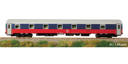| lůžkový vůz modrý-červený se světlešedou střechou |
