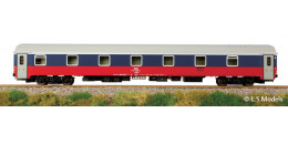 | lůžkový vůz modrý-červený se světlešedou střechou, bez piktogramů |