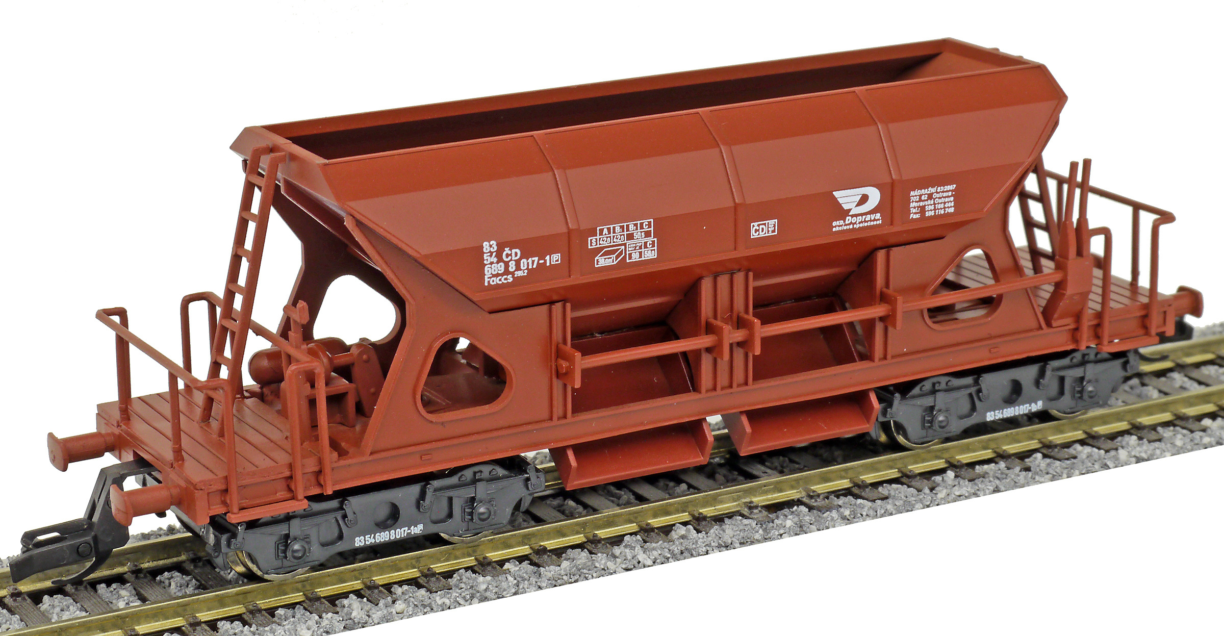 Popis   nákladní samovýsypný vůz červenohnědý „OKD Doprava“