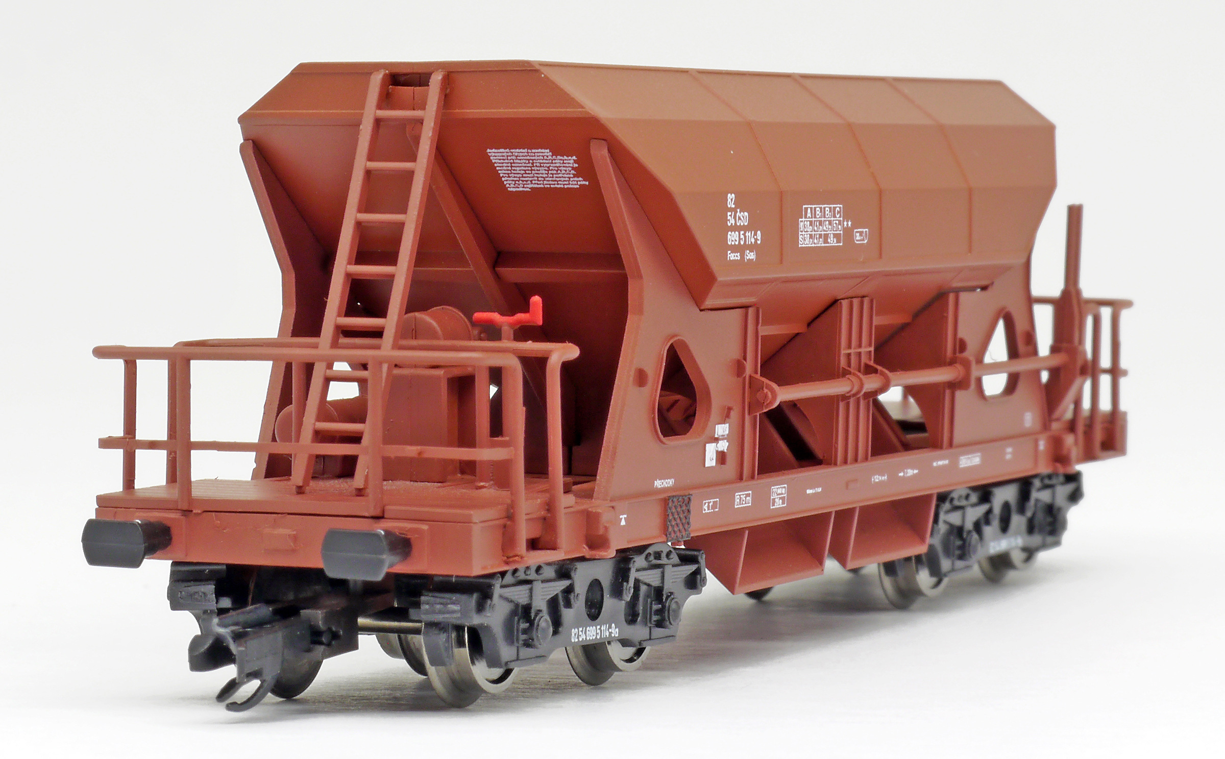 | nákladní samovýsypný vůz červenohnědý s černými podvozky |