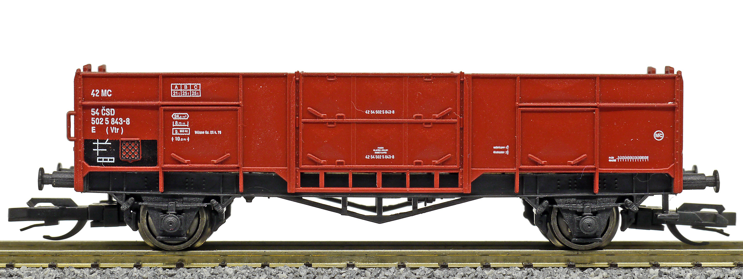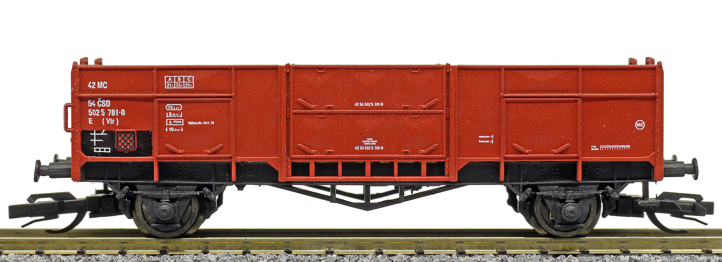měřítko 1:120 - rozchod kolejí 12 mm nenormované uchycení spřáhla 83 mm - celková délka modelu přes nárazníky