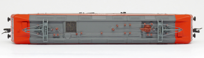 Popis   elektrická lokomotiva červená-šedá s černým pojezdem