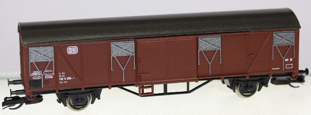 | krytý nákladní vůz červenohnědý s šedou střechou Gbs 254 |