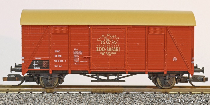 | krytý nákladní vůz červenohnědý s okrovou střechou „ZOO - Safari” |